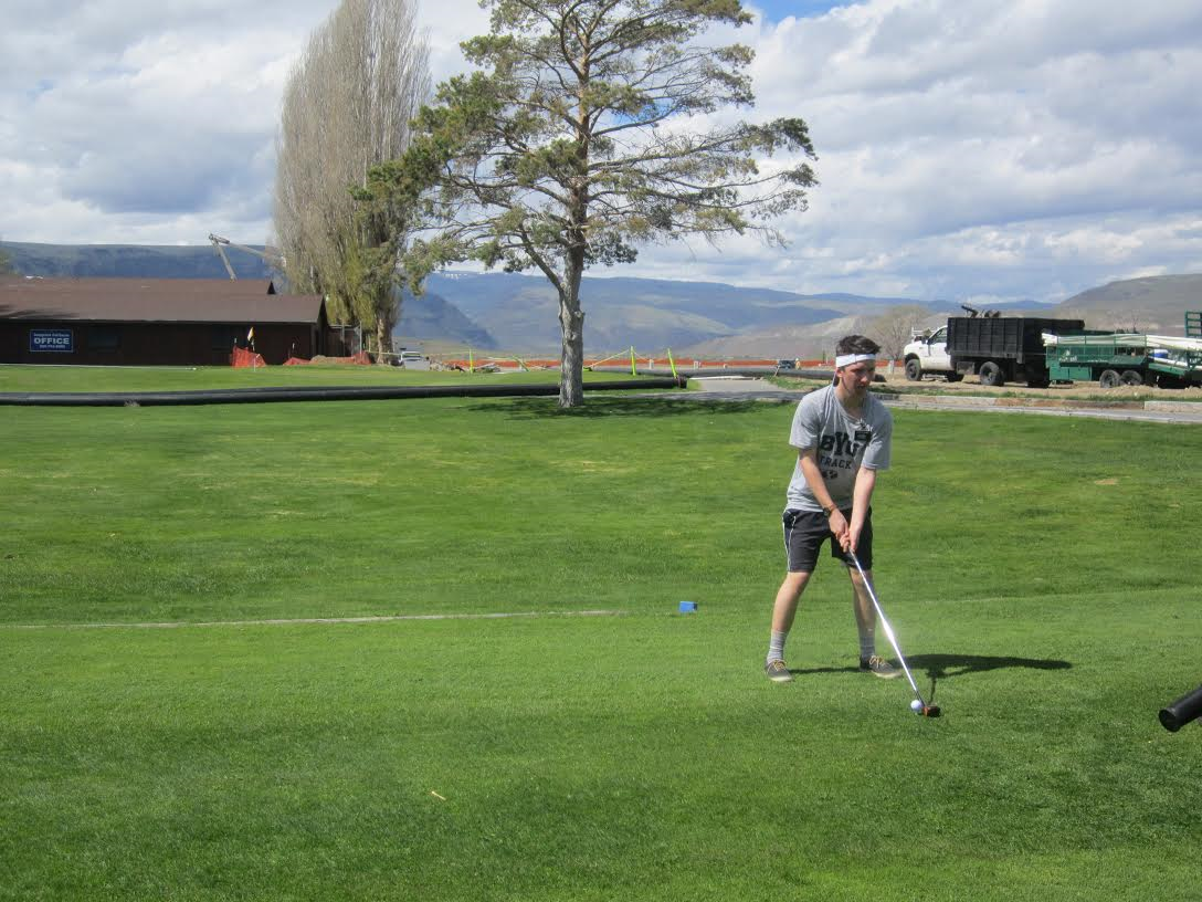 Going down to the Colombia river. That little bit of land by the cliffs is where we golfed
